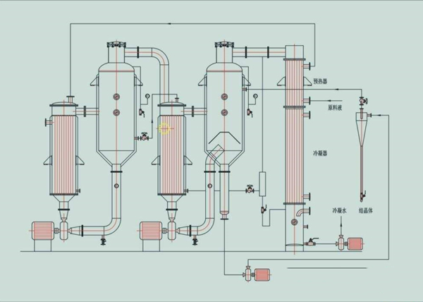 2、由于采用壓縮機(jī)提供熱源,和傳統(tǒng)蒸發(fā)器相比溫差小很多,能夠達(dá)到溫和蒸發(fā),極大地提高產(chǎn)品質(zhì)量,降低結(jié)垢。