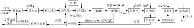 面對新的生產(chǎn)情況及《浙江省印染行業(yè)淘汰落后整治提升方案》要求,企業(yè)決定對現(xiàn)有廢水處理設(shè)施進行擴建、改造,并增加回用水處理設(shè)施,實現(xiàn)50%的中水回用率。工程總設(shè)計水量為4000m3/d,其中在原有污水站設(shè)計能力2400m3/d的基礎(chǔ)上新增設(shè)計水量1600m3/d。