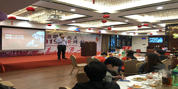宏森環(huán)??偨?jīng)理吳楚任通過主題為"在風口,讓我們和豬一起飛"的形象ppt,帶領(lǐng)大家一起回首宏森環(huán)保過去一年取得的成就和存在的不足,并對這些不足提出了針對性的改進措施,最后還為2019年工作作了簡短的安排。