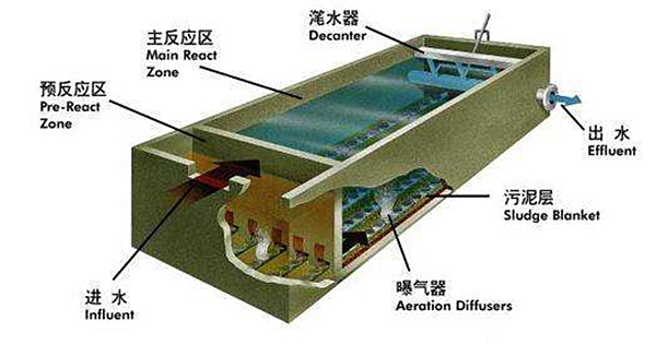 SBR是序批式活性污泥法的簡稱,又稱間歇式活性污泥法,是一種按間歇曝氣方式來運(yùn)行的活性污泥污水處理技術(shù)。SBR技術(shù)的核心是SBR反應(yīng)池,該池集均化、初沉、生物降解、二沉等功能于一池,無污泥回流系統(tǒng)。一共有流入、反應(yīng)、沉淀、排放和閑置五個(gè)工序,比較適用于間歇排放和流量變化較大的場合。